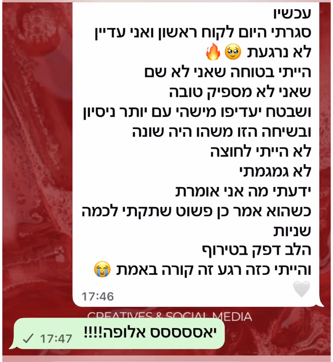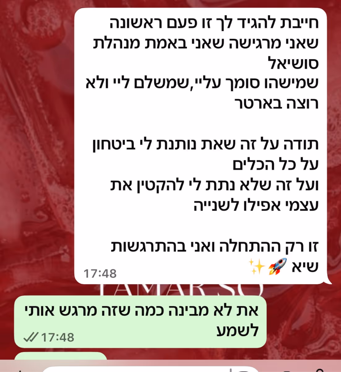 לא התחברת אליי או לתוכן שהעברתי, תקבלי החזר כספי של 100%.